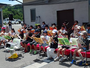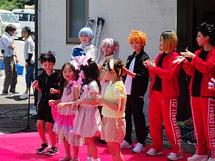 金管バンドの演奏、1,2年生の子ども神輿、水鉄砲体験、ダンスチーム、コスプレチーム、