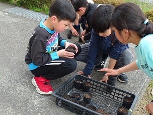 「ズッキーニの種をまいたんだよ」5年生の理科